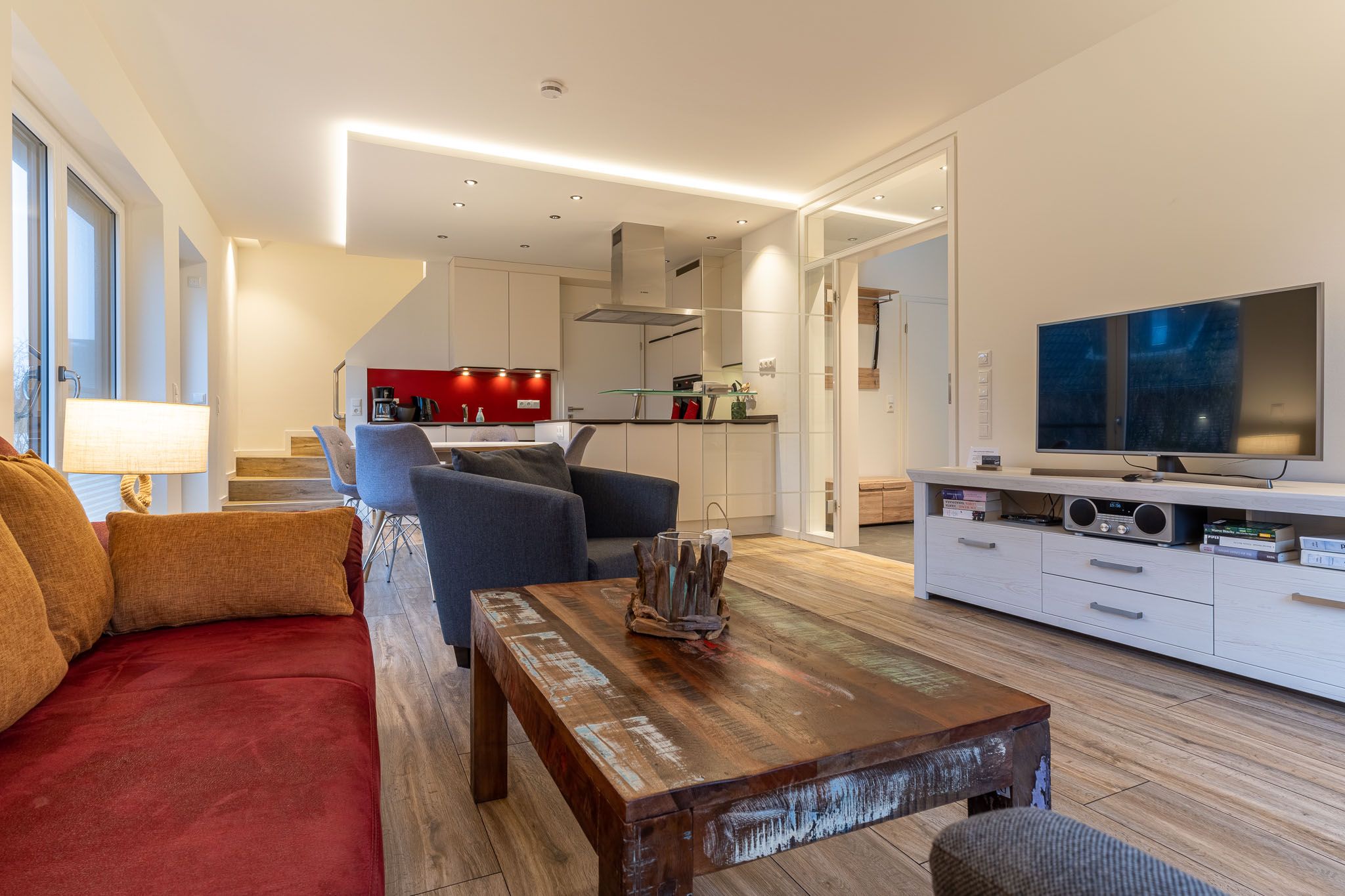 Die Wohnungen sind mit W-LAN und Smart-TV sowie einer bluetoothfähigen Musikanlage ausgestattet. In jeder Wohnung stehen Ihnen eine Waschmaschine und ein Trockner zur Verfügung. Die Küche bietet Ihnen alles, was Sie für die Selbstversorgung benötigen, inklusive Cerankochfeld, Kaffeemaschine, Mikrowelle, Geschirrspülmaschine, Wasserkocher, Mixer, Toaster und Pürierstab. Das Besteck und Geschirr ist ausreichend für jeweils 6 Personen.