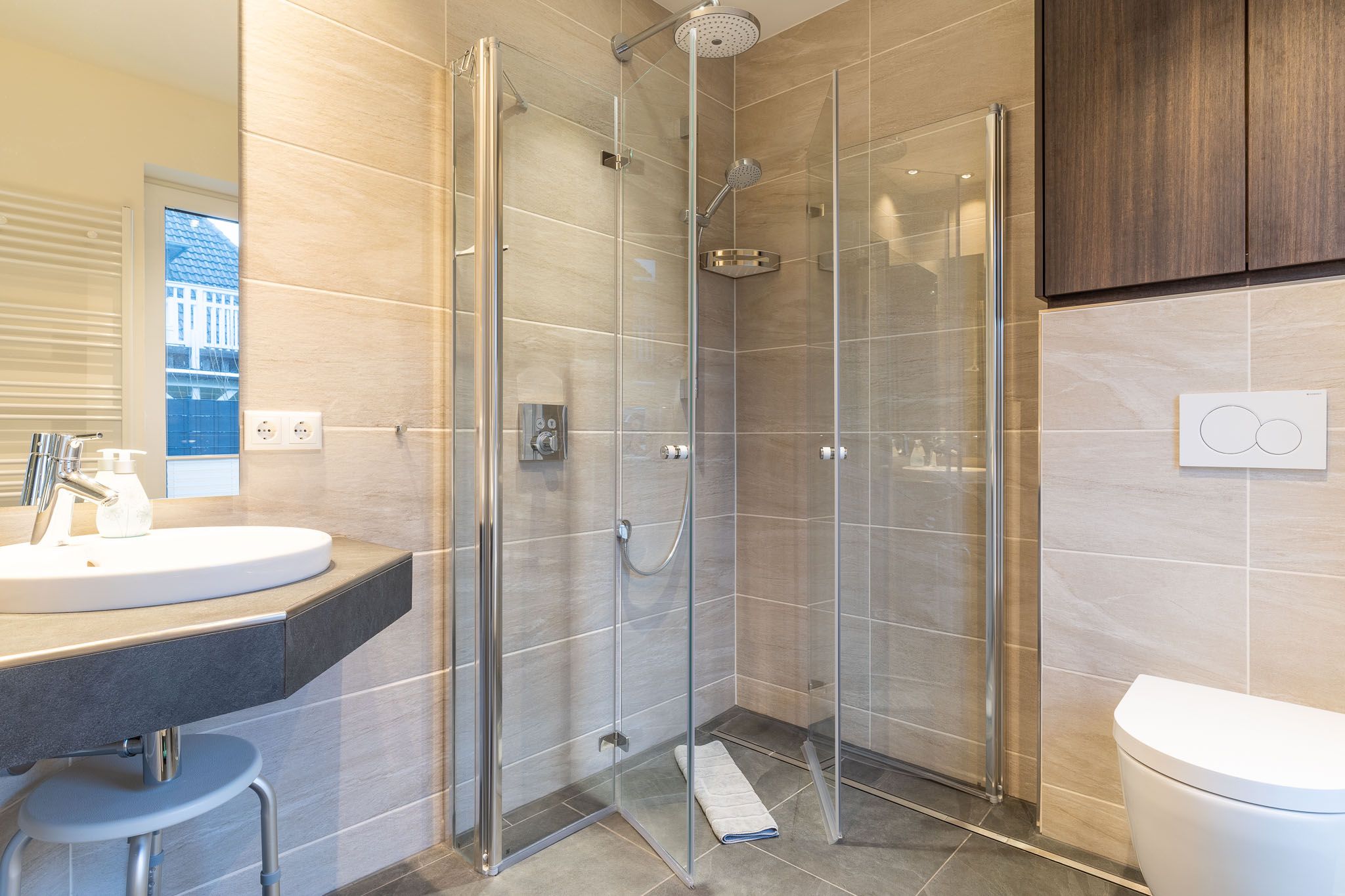 Die Elternschlafzimmer im Dachgeschoss verfügen über ein gemütliches Doppelbett (180 x 200 cm), im Kinderzimmer steht Ihnen ein Etagenbett (90 x 200 cm) zur Verfügung. In einem weiteren Zimmer im Erdgeschoss finden Sie ein Schlafsofa. Das Badezimmer im Obergeschoss verfügt über ein Doppelwaschbecken, WC, bodentiefe Dusche, einen Handtuchtrockner, einen Kosmetikspiegel und einen Fön. Das Duschbad im Erdgeschoss ist behindertenfreundlich. Die Fenster sind mit Insektenschutz ausgestattet.