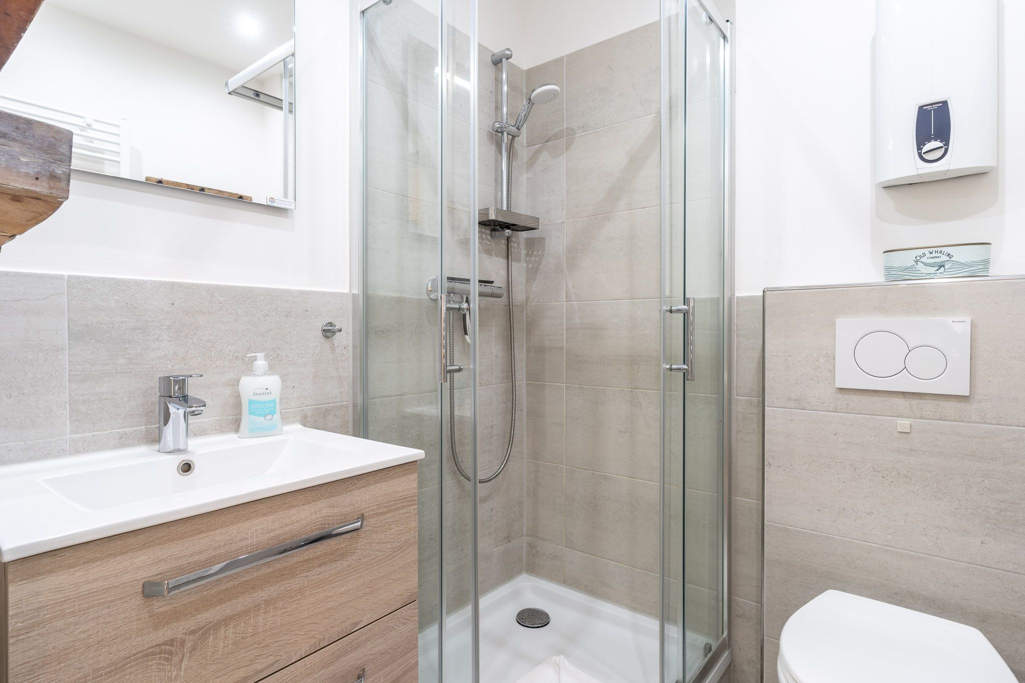 Das Badezimmer der Feinen Butze bietet eine Dusche, ein Waschbecken sowie ein WC. Selbstverständlich sind auch ein Haartrockner und ein Spiegel vorhanden, sodass Sie sich nach einem entspannenden Bad frisch machen können. Zudem ist die Unterkunft ein Nichtraucherobjekt und bietet eine angenehme Atmosphäre ohne störende Gerüche.