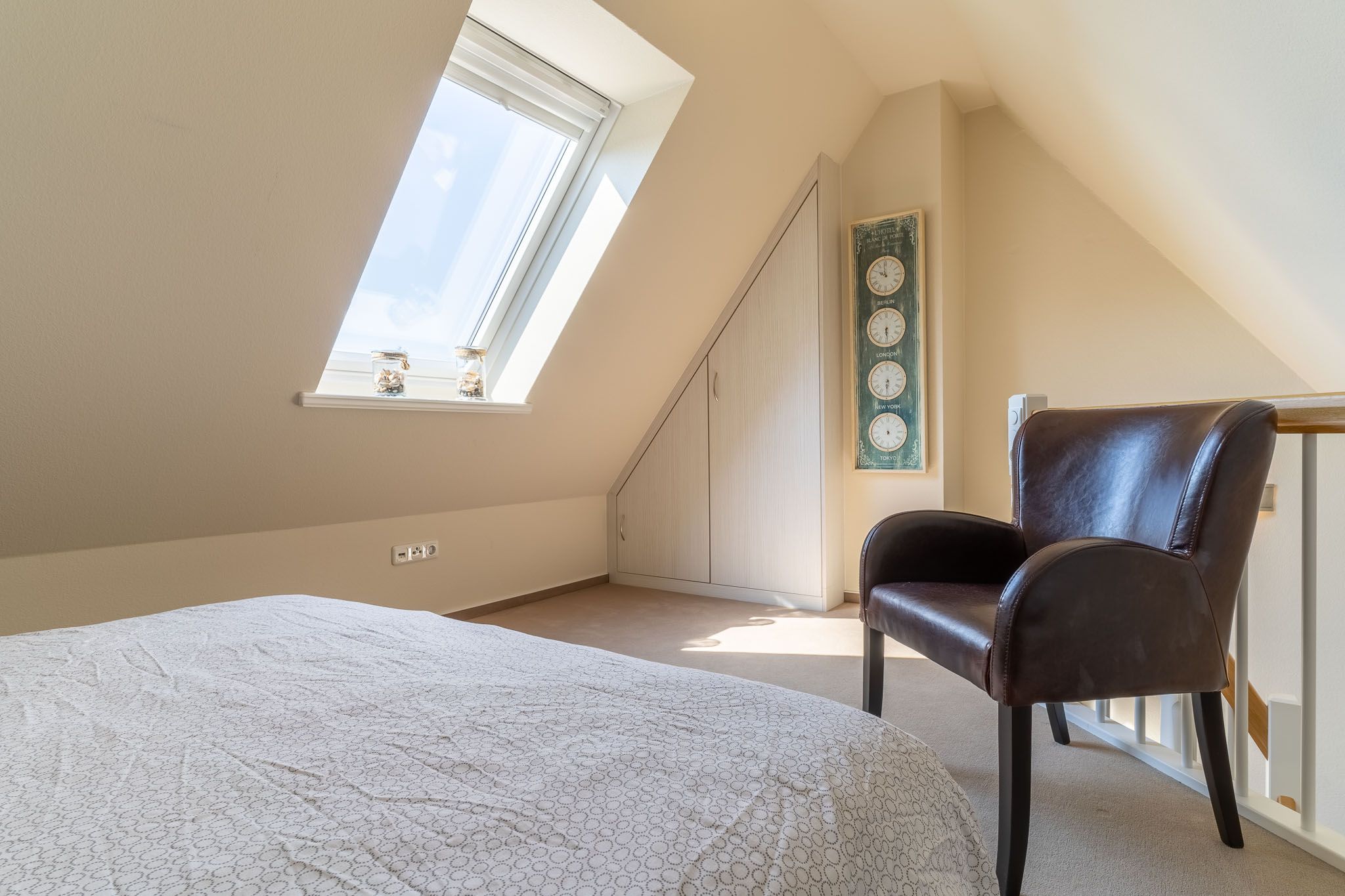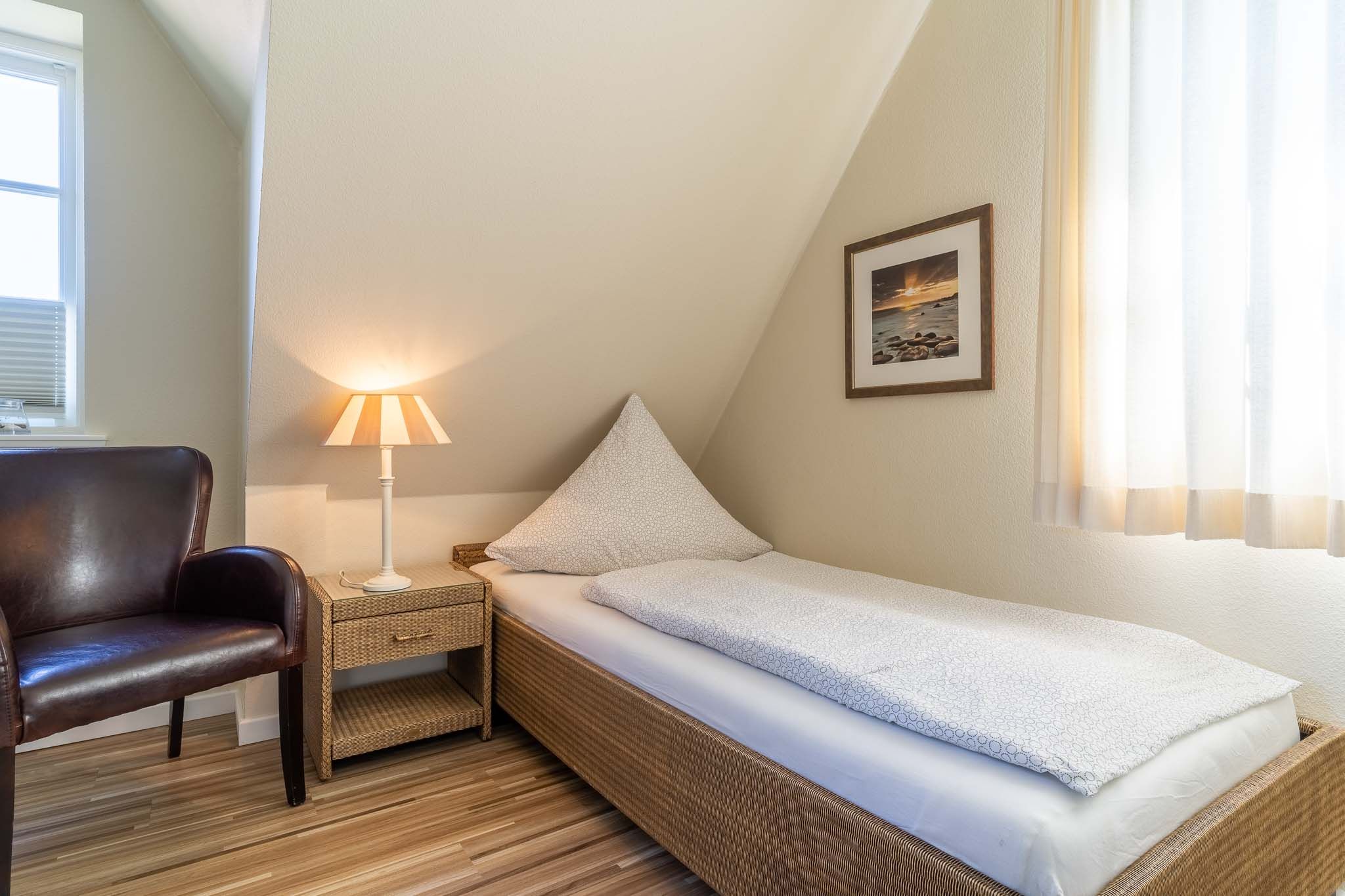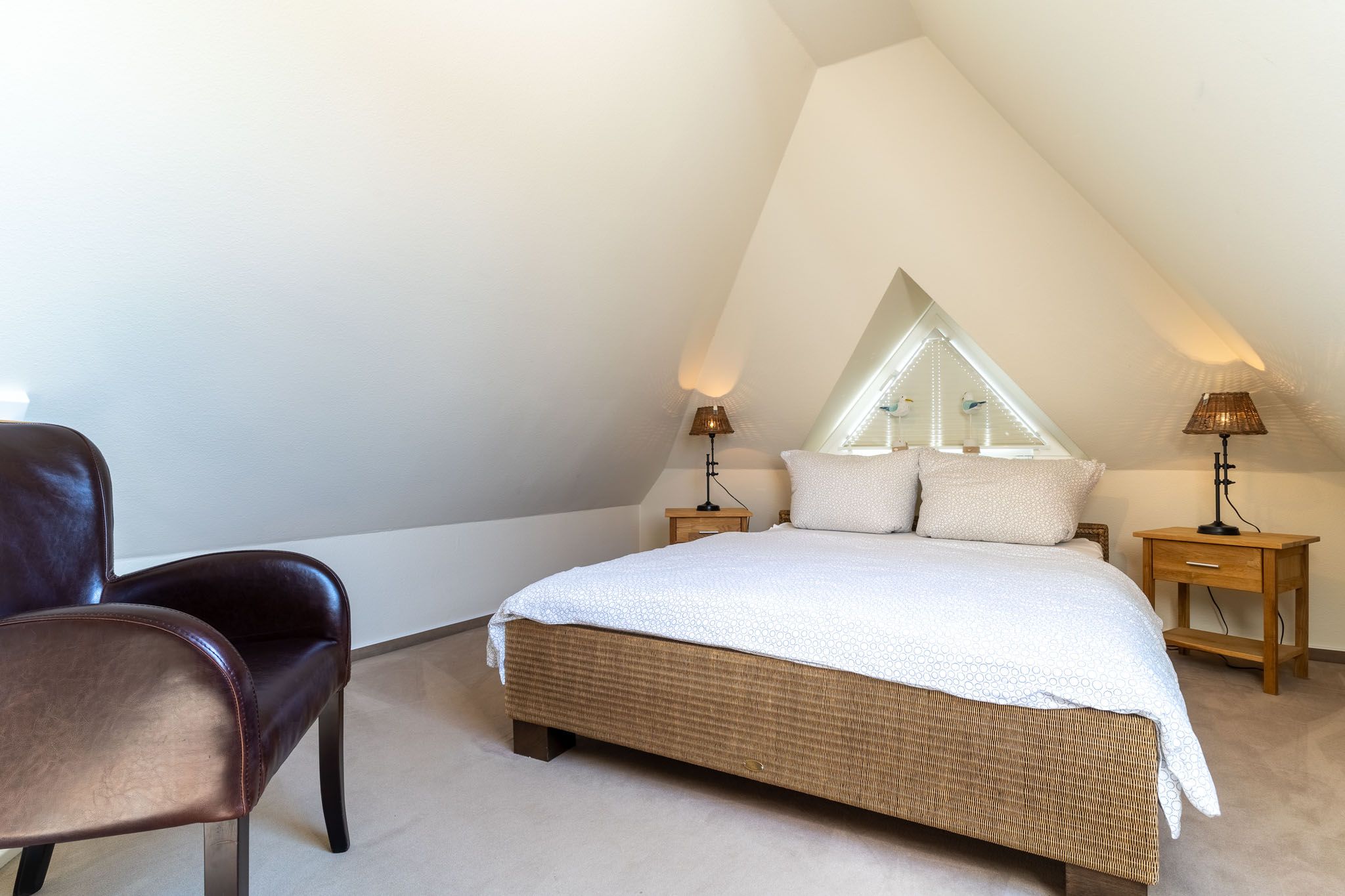 Das ausgebaute Dachgeschoss ist der perfekte Rückzugsort für eine weitere Person oder ein Paar. Hier erwartet Sie ein gemütliches Schlafzimmer mit einem Doppelbett. Auch hier sorgt ein Fenster für ausreichend Tageslicht.