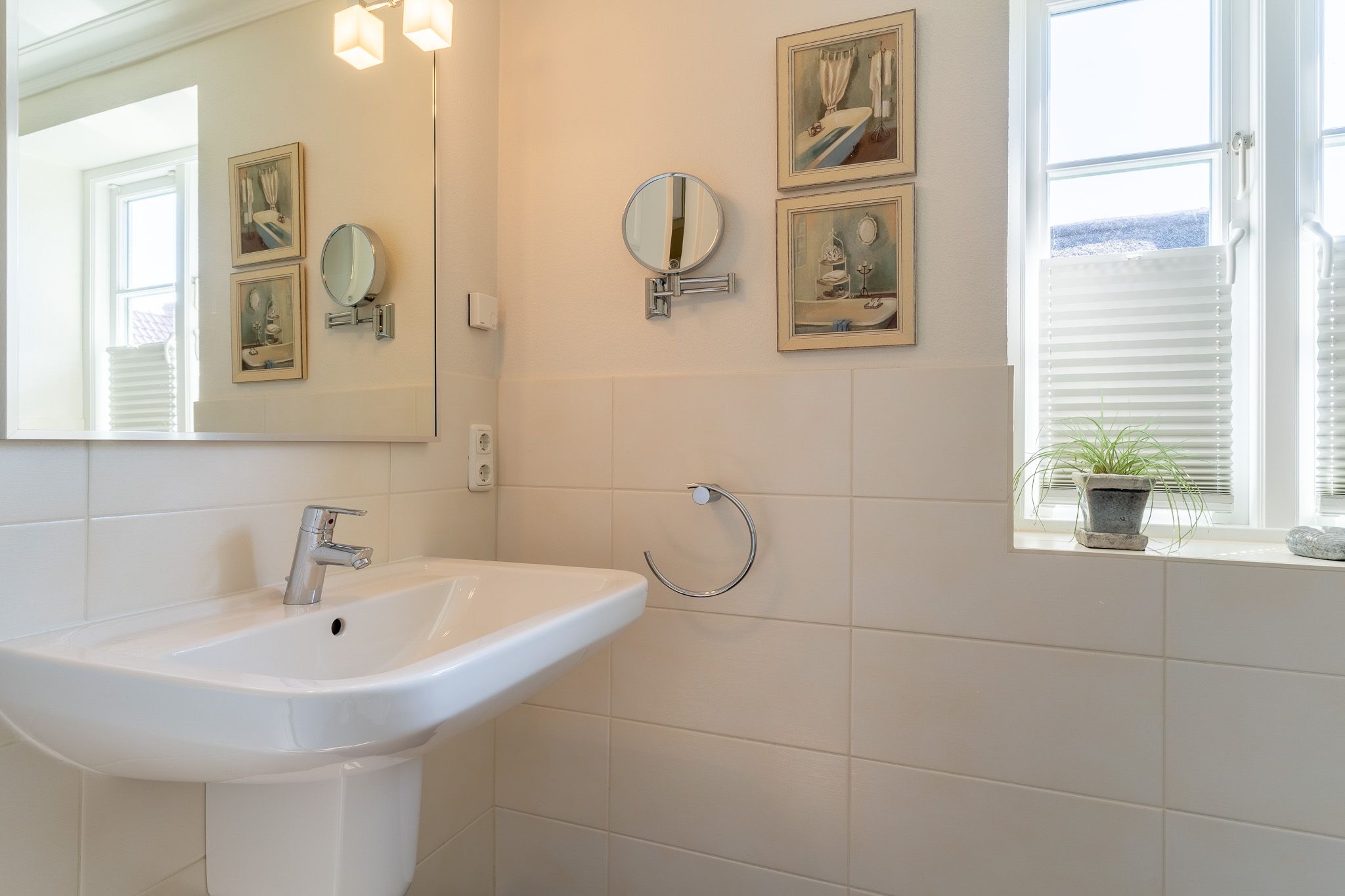 Über eine Treppe im Flur gelangen Sie in das erste Obergeschoss, wo Sie zwei komfortable Schlafzimmer erwarten. Das eine ist mit einem großen Doppelbett und einem Fernseher mit Netflix ausgestattet, während das andere mit zwei Einzelbetten für einen erholsamen Schlaf sorgt. Ein weiteres Duschbad mit WC komplettiert das Angebot auf dieser Ebene.