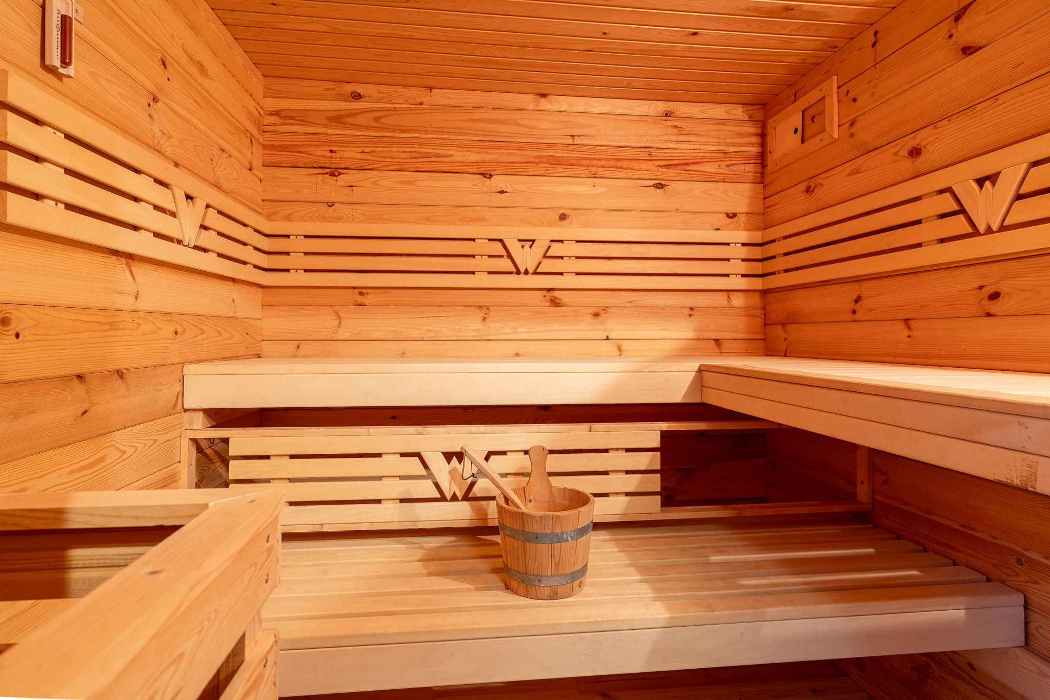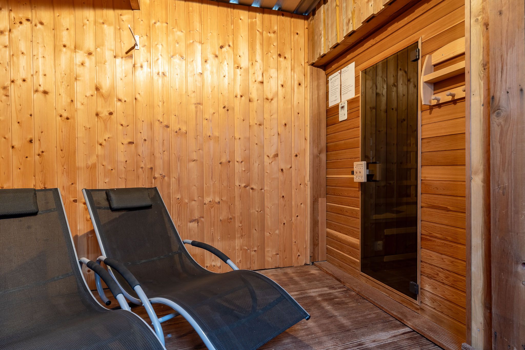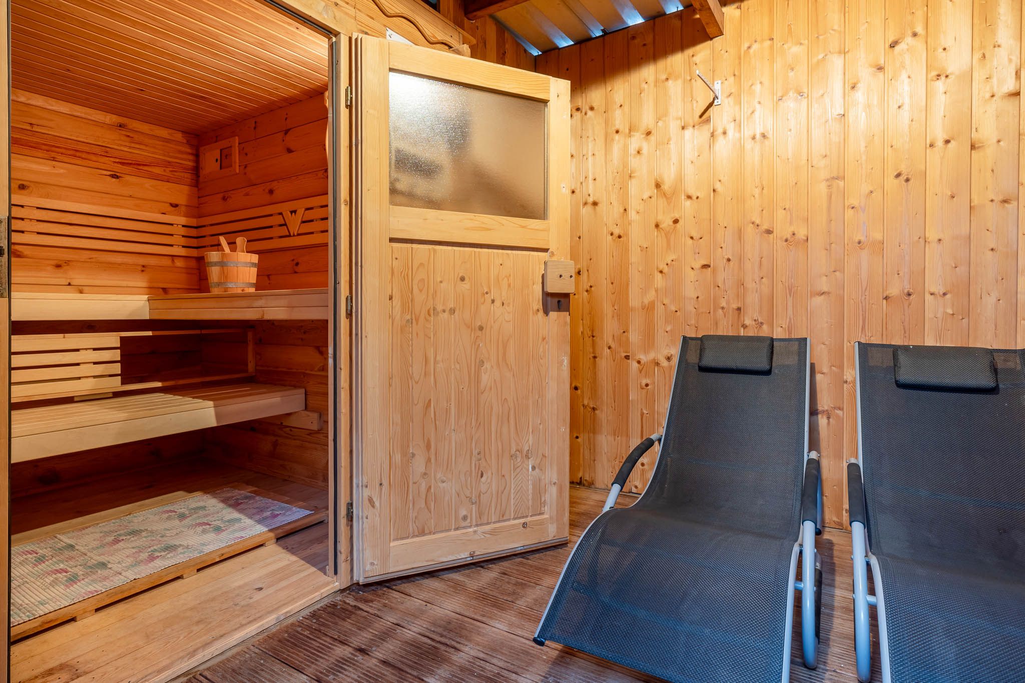 Für Wellness und Entspannung stehen im Haus zusätzlich eine Sauna sowie eine Infrarotkabine mit Ruhebereich zur Verfügung (Nutzung gegen Münzeinwurf). Obwohl sich im Obergeschoss zwei kleine dauerhaft vermietete Appartements befinden, stehen Ihnen Terrasse und Liegewiese exklusiv zur alleinigen Nutzung zur Verfügung.